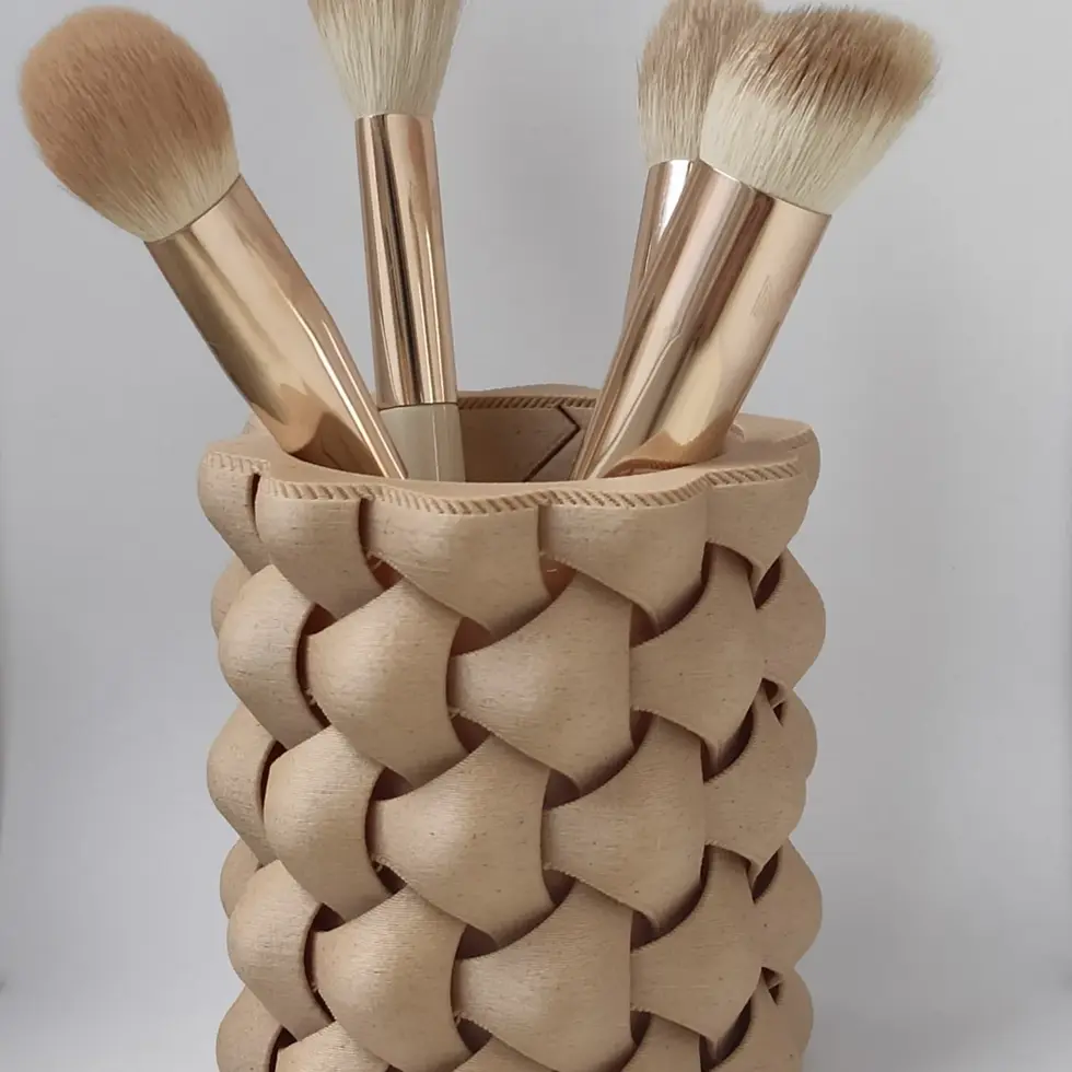 תיאור המוצר: מחזיק עטים ייחודי בעיצוב אדריכלי מרהיב, המשלב אומנות ופונקציונליות. העיצוב הגיאומטרי המורכב מתבניות חוזרות של קשתות מתפתלות, יוצר טקסטורה תלת-ממדית מרתקת המזכירה קליעת סל או דוגמת כוורת מודרנית. מאפיינים: • עיצוב ייחודי של דוגמת קליעה תלת-ממדית • מתאים לאחסון עטים, עפרונות, מכחולים ופריטי כתיבה שונים • משמש גם כפריט נוי דקורטיבי למשרד או לשולחן העבודה • מידות: גובה 12 ס"מ, קוטר 8 ס"מ (בקירוב) שימושים: • מחזיק כלי כתיבה למשרד • מעמד למכחולים לאמנים • פריט עיצוב דקורטיבי • מתנה ייחודית לחובבי עיצוב